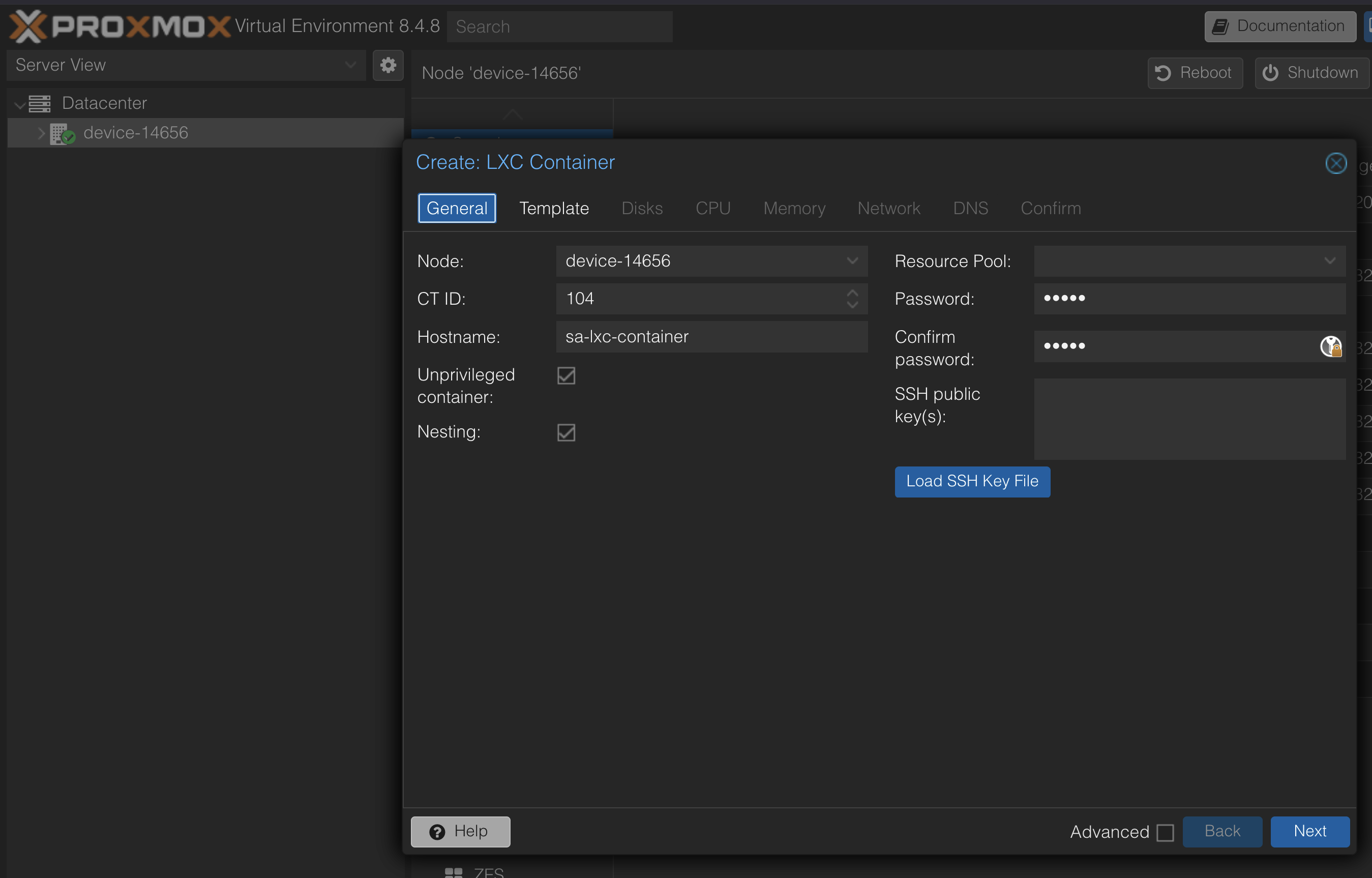 Setting Up The LXC Container via Proxmox Console or Web UI